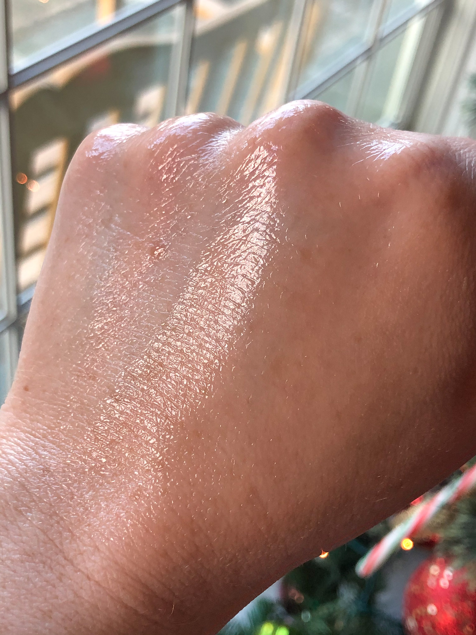- One pump blended out on the back of my hand to show the incredibly glossy finish.